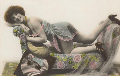 EX-223 Smiling Woman on Daybed - Vintage Image