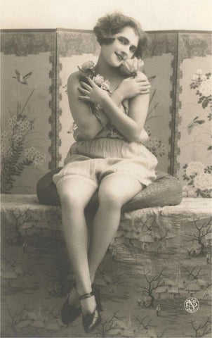 EX-230 Coy Woman in Silk Stockings - Vintage Image