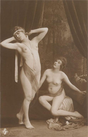 EX-254 Two Female Nudes in Dramatic Poses - Vintage Image