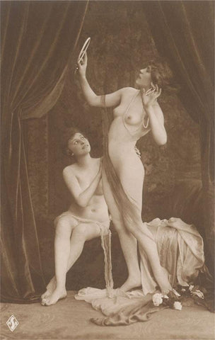 EX-255 Two Female Nudes in Dramatic Poses - Vintage Image