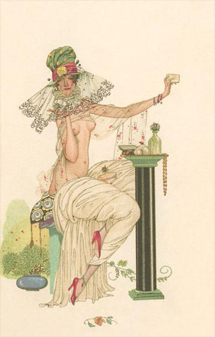 EX-259 Topless Woman with Veil - Vintage Image