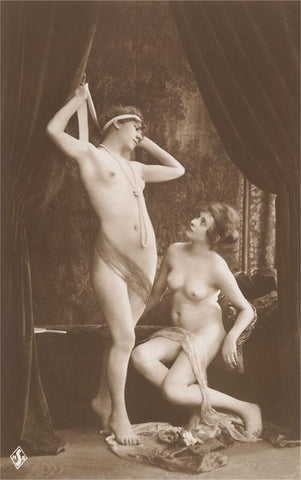 EX-268 Two Female Nudes in Dramatic Poses - Vintage Image
