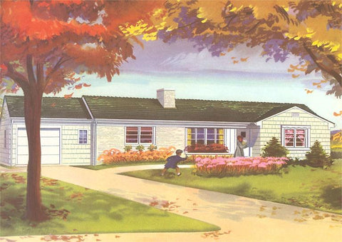 AD-219 Rendering of Suburban Home in Autumn - Vintage Image