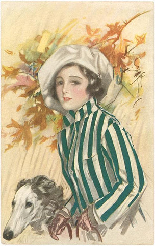 FN-75 French Fashion, Woman with Borzoi - Vintage Image