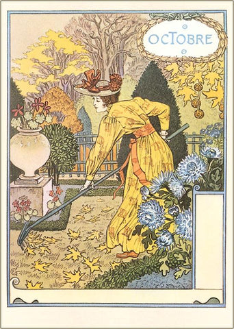 ZC-109 Octubre, Raking Leaves - Vintage Image
