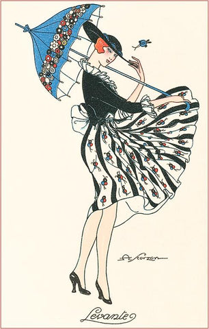 FN-143 Woman with Parasol Tipping Hat - Vintage Image