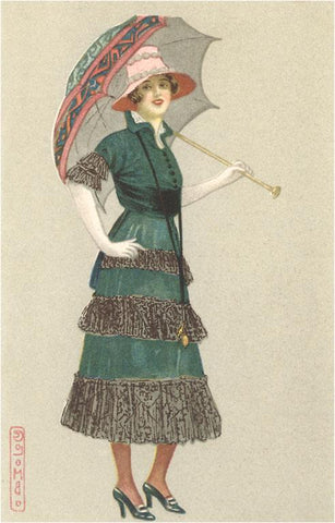 FN-157 Woman with Parasol and Hat - Vintage Image