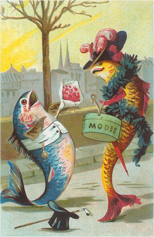 FN-175 Two Fashionable Fish Meet on the Street - Vintage Image