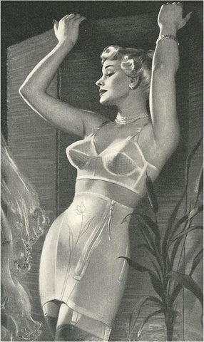 FN-194 Woman in Underwear with Screen and Cattails - Vintage Image
