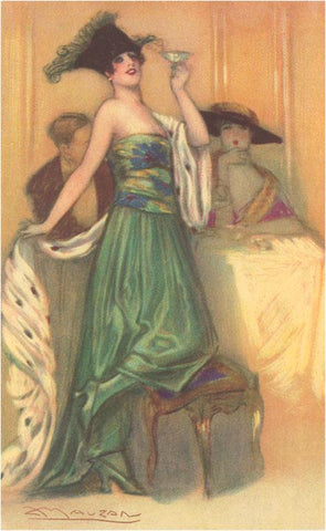 FN-215 Woman in Gown with Champagne - Vintage Image