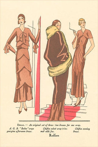 FN-335 Fashion Illustration, Three Dresses - Vintage Image