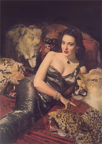 FN-682 Lounging Woman with Animal Pelts - Vintage Image