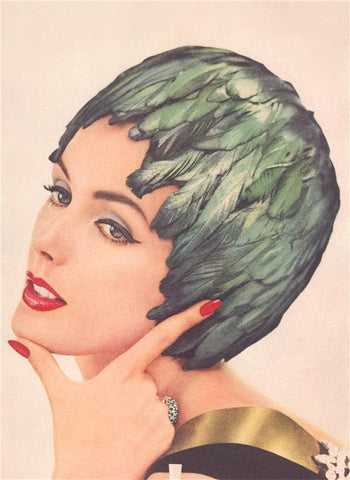 FN-683 Woman in Close-fitting Green Feather Hat - Vintage Image