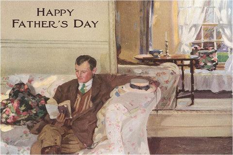 DD-15 Happy Father's Day Reading, with Straw Hat - Vintage Image