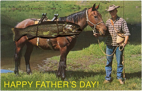 DD-72 Giant Trout Strapped to Side of Horse, Happy Father's Day - Vintage Image