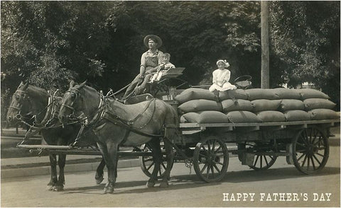 DD-81 Father's Day, Farmer with Kids on Wagon - Vintage Image