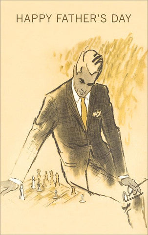 DD-130 Sketch of Man with Chess Set - Vintage Image