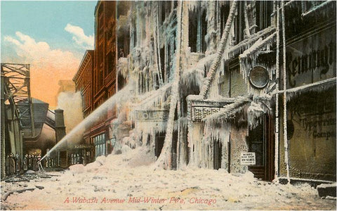 FD-31 Mid-Winter Fire in Chicago, Illinois - Vintage Image