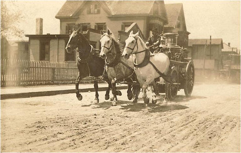 FD-38 Horse-Drawn Fire Engine Racing to the Fire - Vintage Image