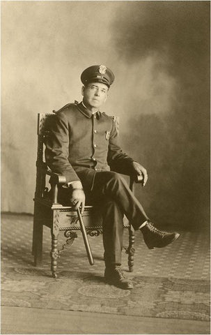 FD-47 Cop in Chair with Billy Club - Vintage Image