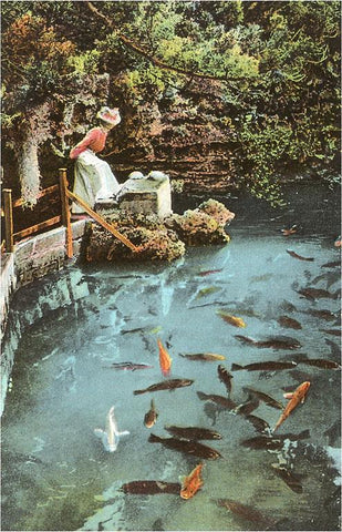 FH-25 Victorian Woman by Fish Pond - Vintage Image