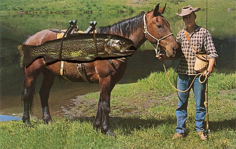 FS-21 Giant Trout Strapped on Horse - Vintage Image