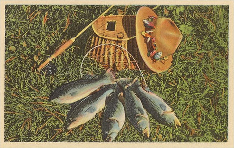 FS-40 Five Fish with Creel and Hat - Vintage Image