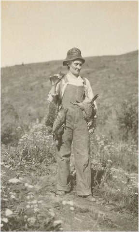 FS-57 Woman in Overalls Carrying Dead Animals - Vintage Image