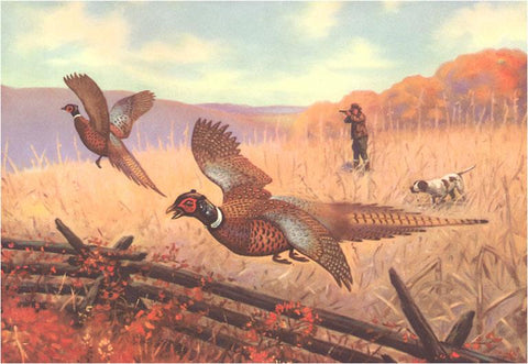 FS-66 Man Shooting Pheasants, Pointer - Vintage Image