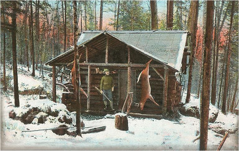 FS-67 Deer Hanging by Rustic Cabin in Winter - Vintage Image