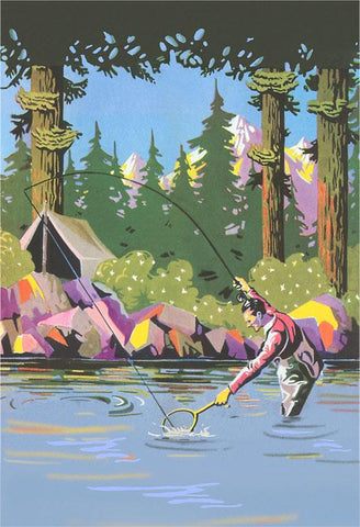 FS-74 Fisherman in Mountain Lake - Vintage Image