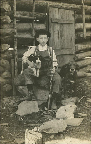 FS-76 Boy with Rifle and Two Dogs - Vintage Image