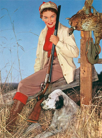 FS-120 Woman with Rifle, Dog and Pheasant - Vintage Image