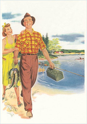 FS-128 Fisherman and Admiring Wife - Vintage Image