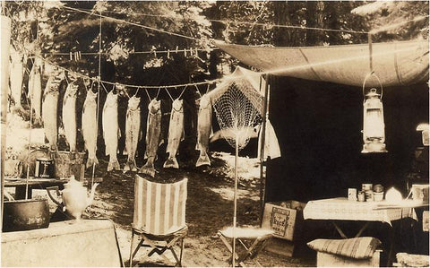 FS-163 Fish Hanging at Camp Site - Vintage Image