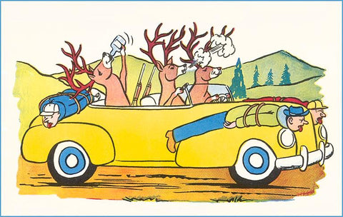 FS-170 Deer Driving, Men on Fenders - Vintage Image