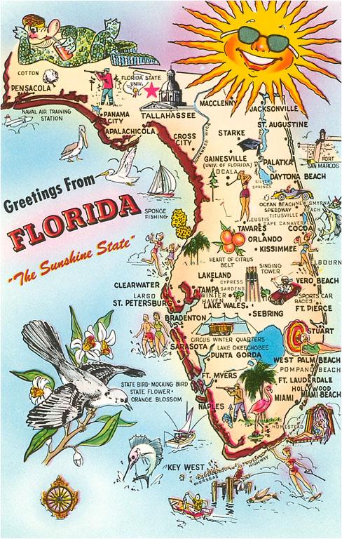 FL-117 Map of Florida - Vintage Image