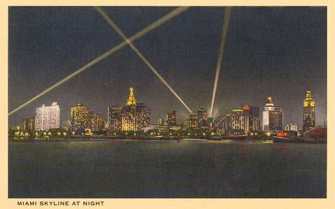 FL-63 Night Skyline, Miami, Florida - Vintage Image