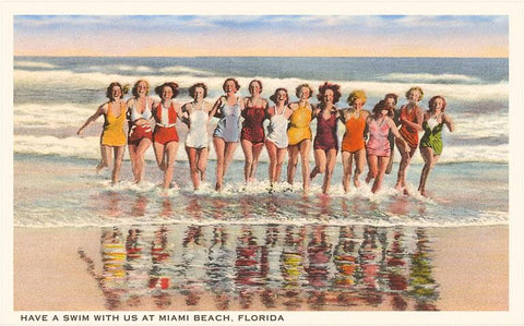 FL-533 Women in Surf, Miami Beach, Florida - Vintage Image