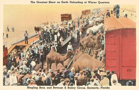 FL-617 Circus Camels in Trains, Sarasota, Florida - Vintage Image