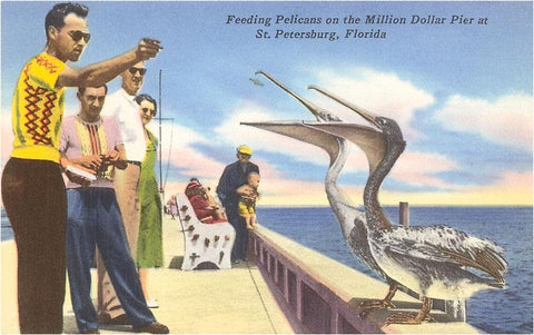 FL-748 Feeding Pelicans, St. Petersburg, Florida - Vintage Image