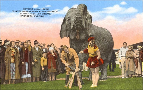 FL-754 Circus Elephant getting Manicure, Sarasota, Florida - Vintage Image