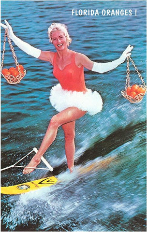 FL-854 Water Skier with Florida Oranges - Vintage Image