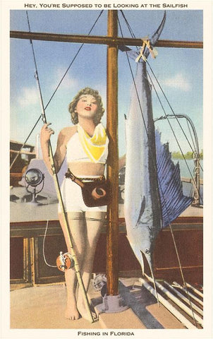 FL-856 Bathing Beauty with Sailfish, Florida - Vintage Image