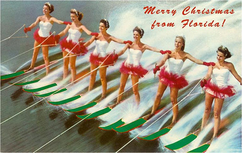 FL-962 Merry Christmas from Florida, Water Skiers - Vintage Image
