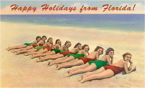 FL-968 Bathing Beauties on Sand, Happy Holidays from Florida - Vintage Image