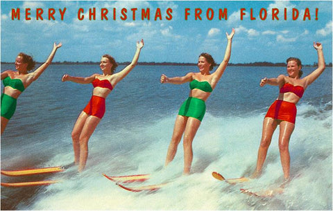 FL-969 Water Skiers, Merry Christmas from Florida - Vintage Image