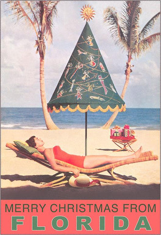 FL-972 Merry Christmas from Florida, Festive Umbrella - Vintage Image