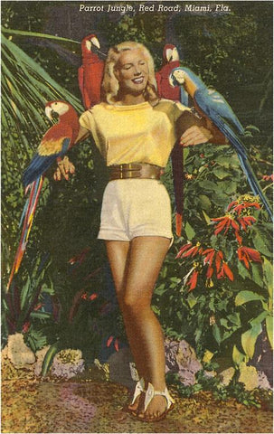 FL-129 Blonde with Macaws, Florida - Vintage Image