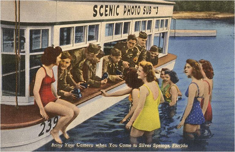 FL-149 Servicemen, Bathing Girls, Silver Springs, Florida - Vintage Image